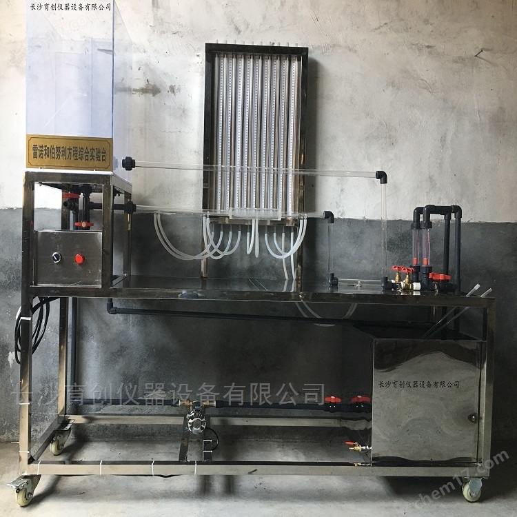 主要配置:恒压水箱、试验管(包含扩大段及弯管段)、测压管、流量计、回水管路、供水箱、供水泵、实验台架等。